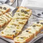 Don’t stress about the cheese placement; it’s OK for it to look messy! If the bread is hard, warm it before slicing. Leftover bread should be kept at room temperature, not refrigerated.
